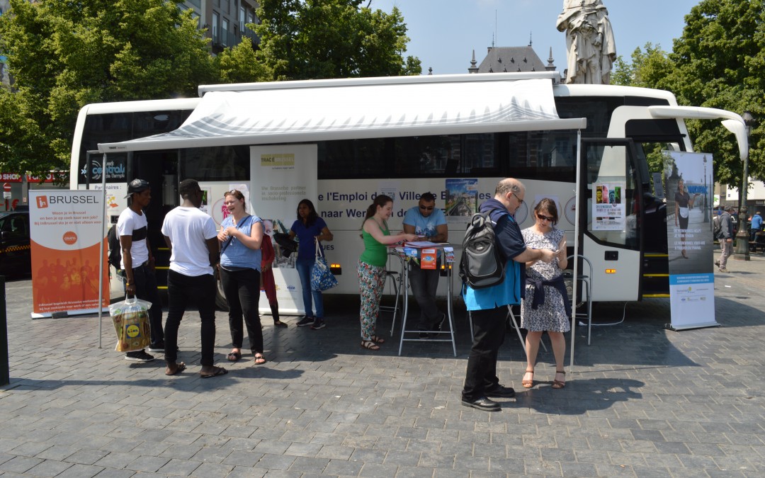 Inauguré en 2014, le Bus de l’Emploi de la Ville de Bruxelles est un projet majeur de la Centrale de l’Emploi. Créé à l’initiative de Marion Lemesre et en partenariat avec la Mission Locale pour l’Emploi, le Bus de l’Emploi est un guichet mobile d’action et d’information sur les thèmes de l’emploi/la formation et l’insertion. Cet outil permet avant tout d’offrir une information de première ligne et de renvoyer les chercheurs d’emploi vers les structures répondant à leurs demandes spécifiques.